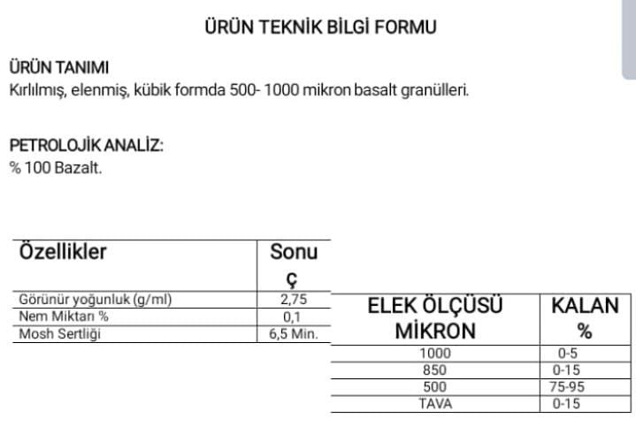Metal Yüzey Sertleştirici Kumlama Kumu 0,5-2,5 mm. Yapı kimyasalları ve metal alanında da yüzey sertleştirici olarak kullanılan çok sert bir malzemedir.